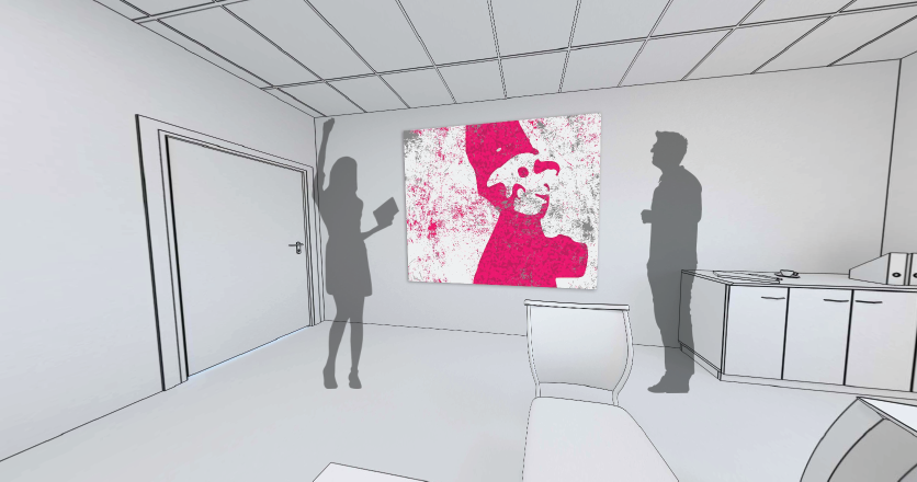 These paintings are generated using a unique process, where the image is first designed in a virtual space and then produced. The result is then a perfectly fitting, tailored painting. You can't buy this at the supermarket.
